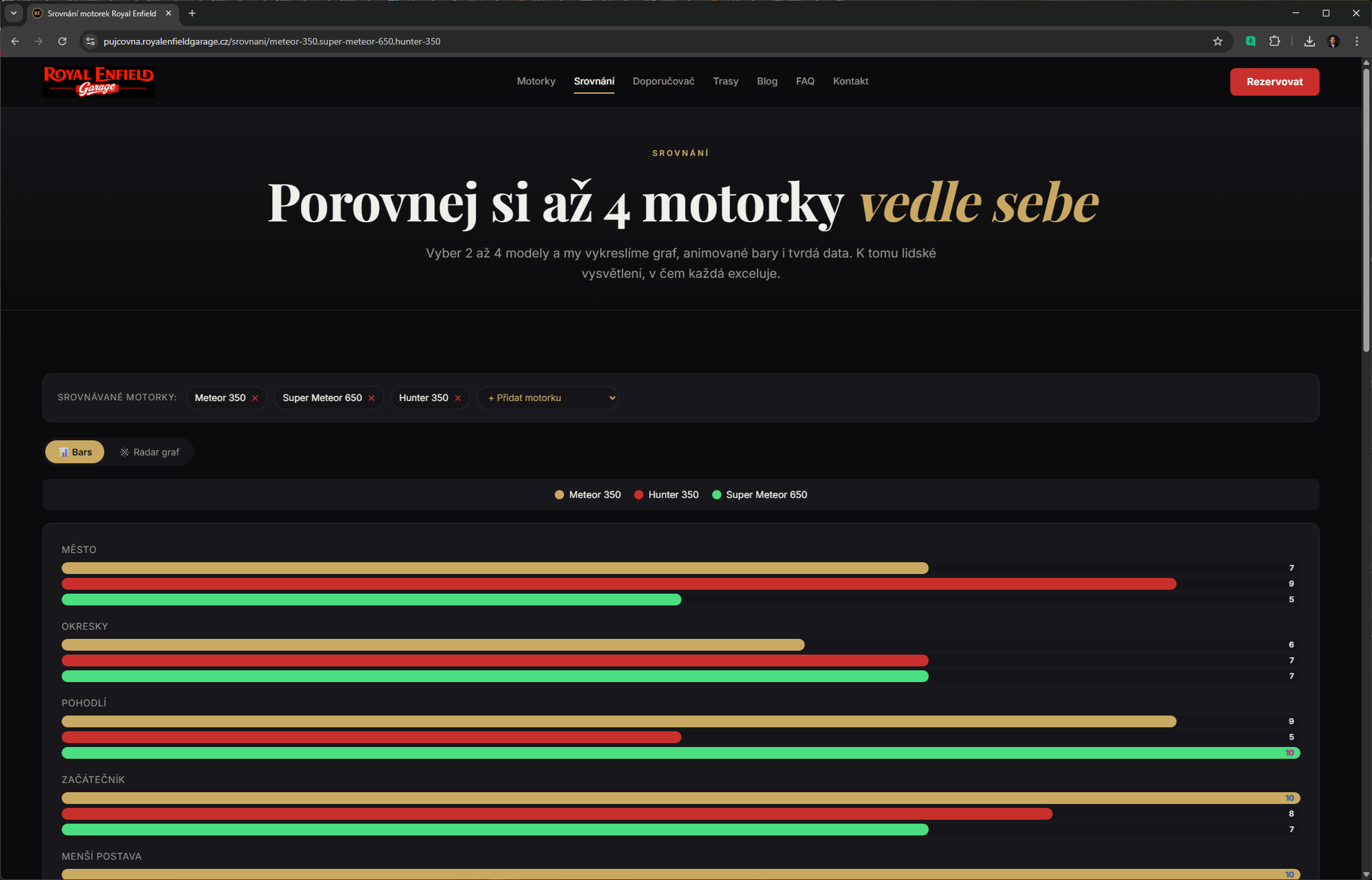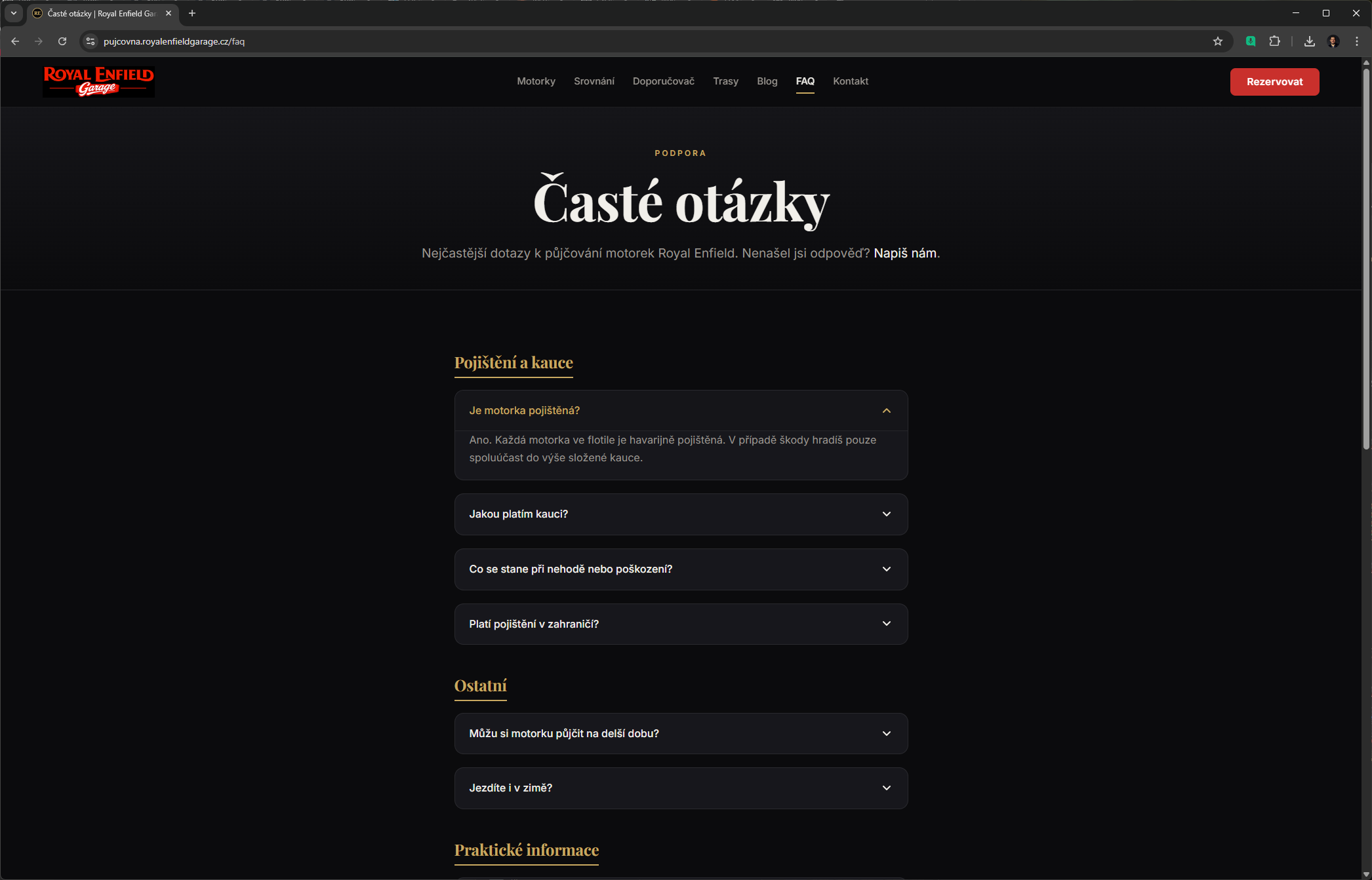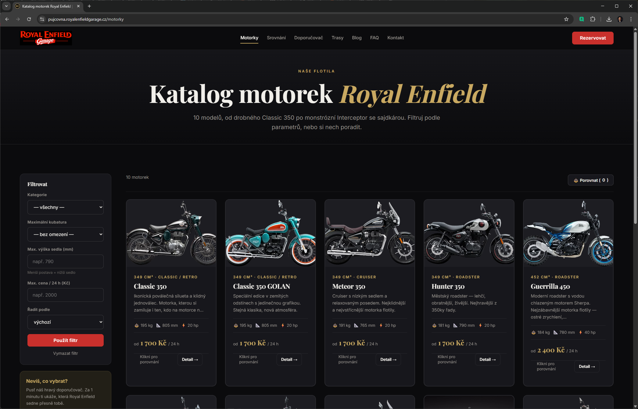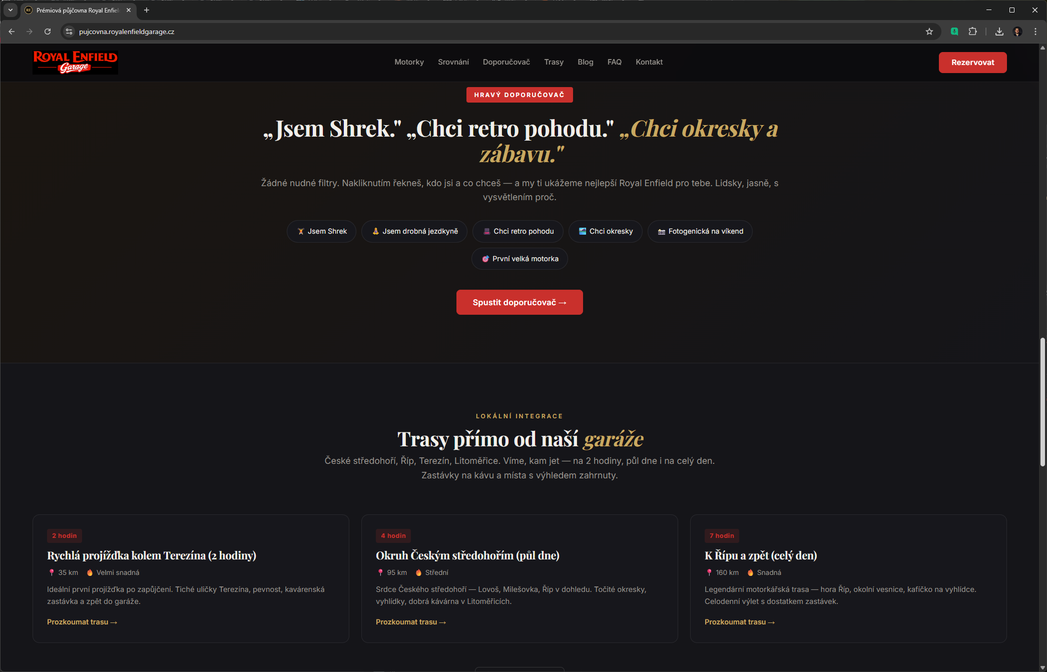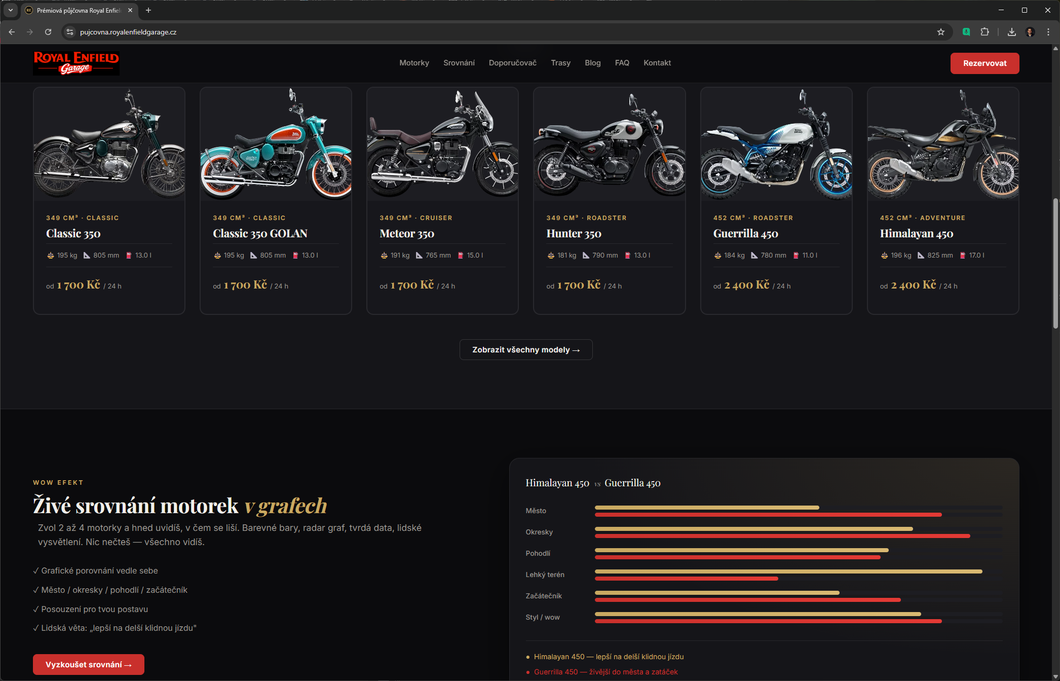 Základ zůstal jasný: motorky, podmínky, ceny, rezervace. Ale nad tím vznikla celá poradenská a zážitková vrstva.