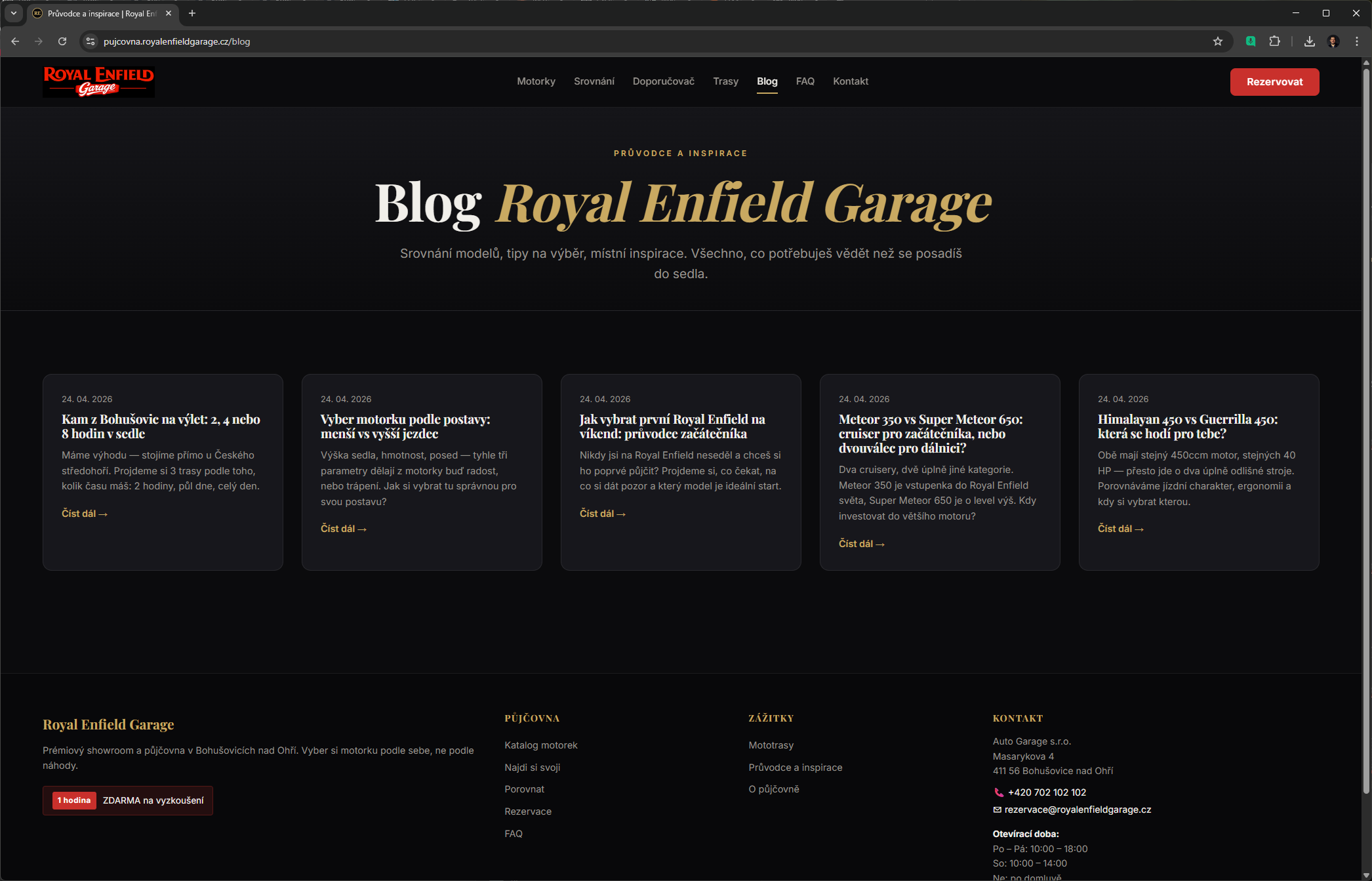 Royal Enfield Garage v Bohušovicích nad Ohří si u nás objednal nový web, e-shop a půjčovnu motorek.